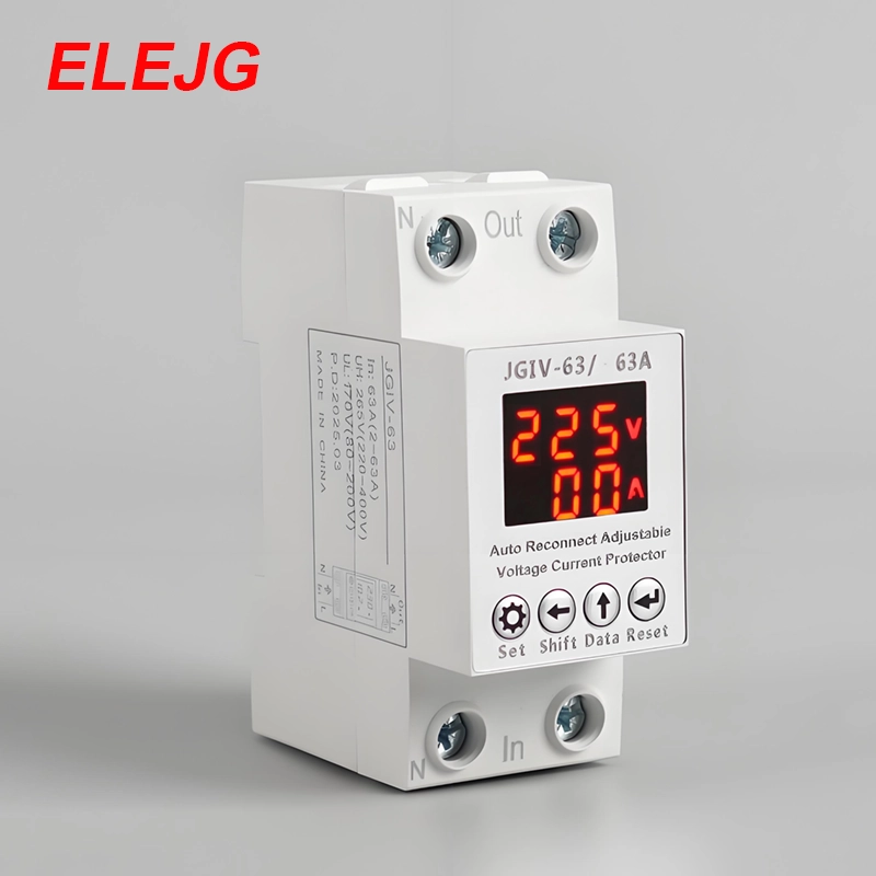 Adjustable Over Under Voltage Protector Digital Voltage Protector JGIV-63 series is a current limiting leakage type overvoltage and undervoltage protector, which includes overvoltage, undervoltage, short circuit, leakage, and comprehensive protectors. The product has the advantages of modularity, intelligence, and visualization.