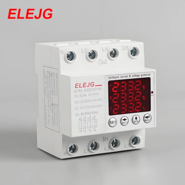 Three phase Four wire current and voltage protector JGXL-63S-3P+N